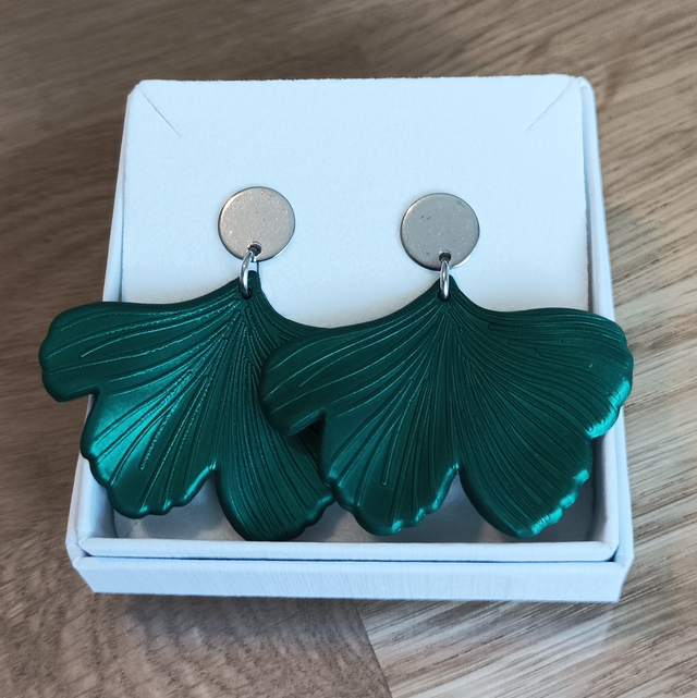 Suositut vihreät Ginkgo -lehtikorvakorut, joka on Neidonhiuspuun lehti. Ginkgo -lehti on kauniin viuhkamainen ja se symboloi rauhaa, toivoa ja pitkää ikää. Korvakorut ovat näyttävät ja tuntuvat kevyeltä korvissa.
