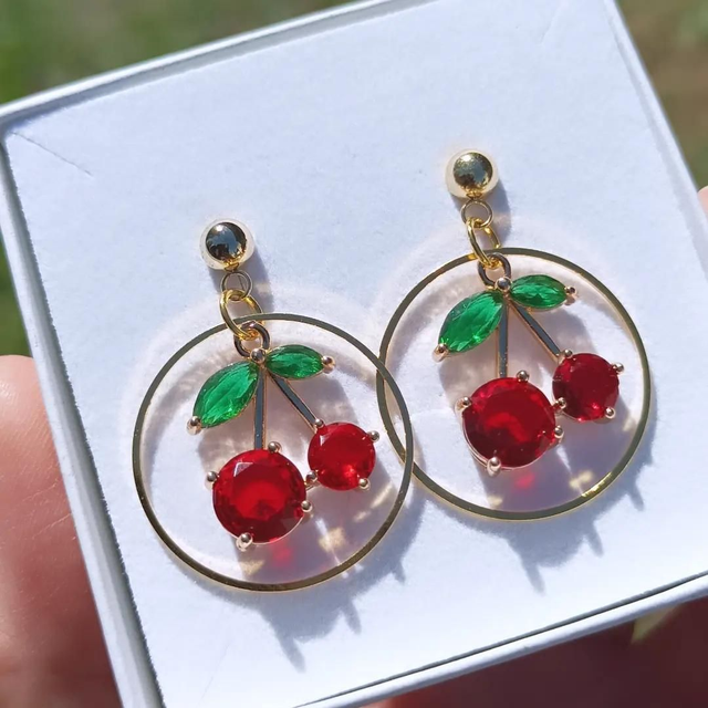 Persoonalliset korvakorut upeaan tyyliin. Kirsikka -korvakoruja on saatavilla sekä perinteisen mallisella koukulla että pyöreällä korvakorutapilla.