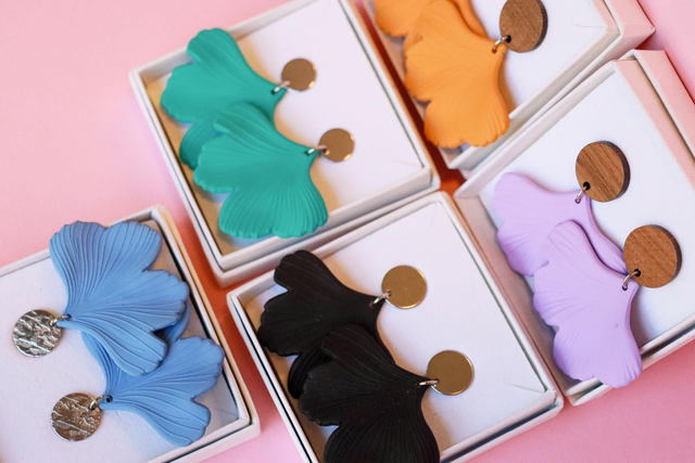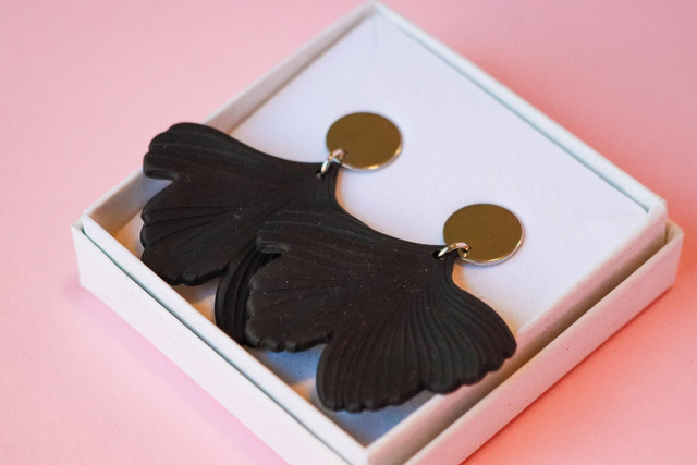 Näyttävät mustat Gingkolehti -korvakorut, jotka sopivat moneen eri tyyliin.