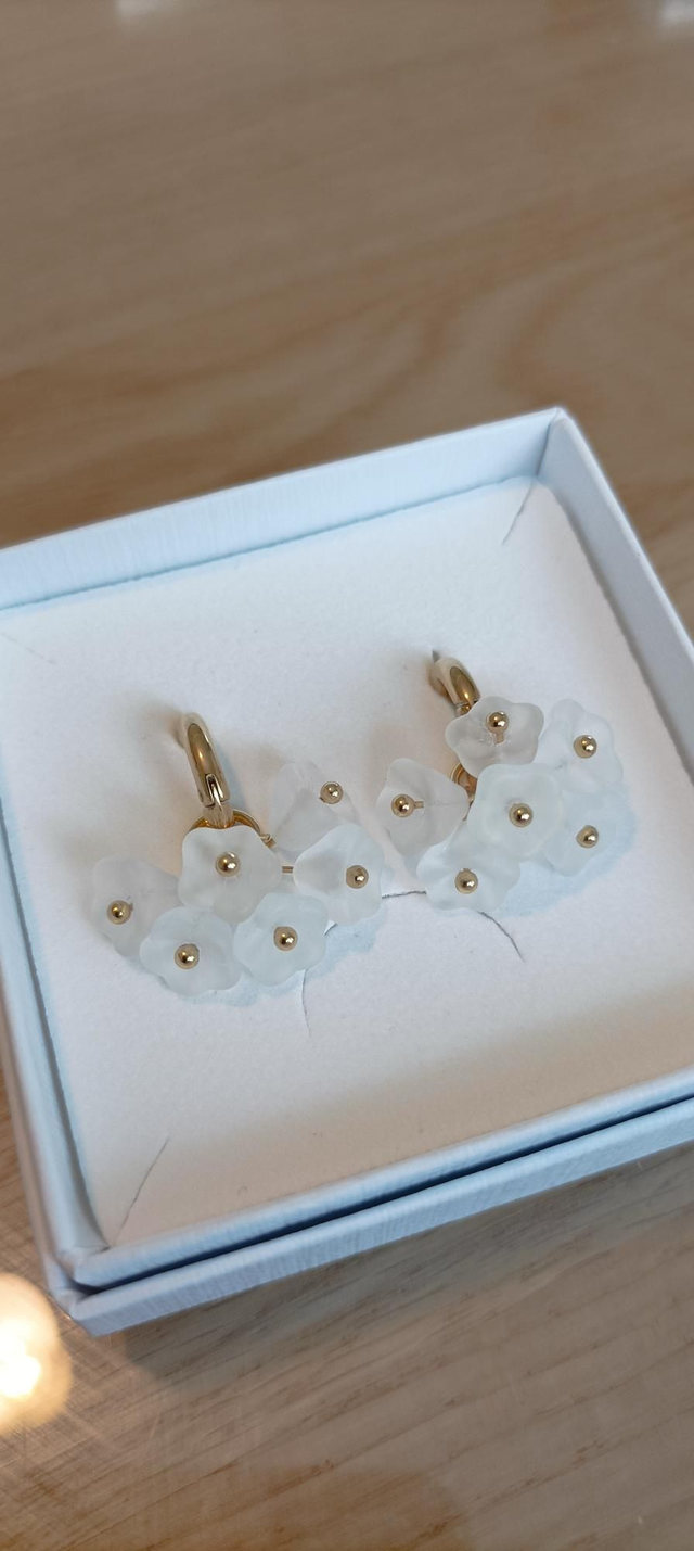 Korvakorujen mukana tulee kaunis ekologisesti valmistettu valkoinen korulaatikko. Säilytä korujasi aina korulaatikossa sekä suojassa kosteudelta, jotta ne säilyvät pidempään käytössä.